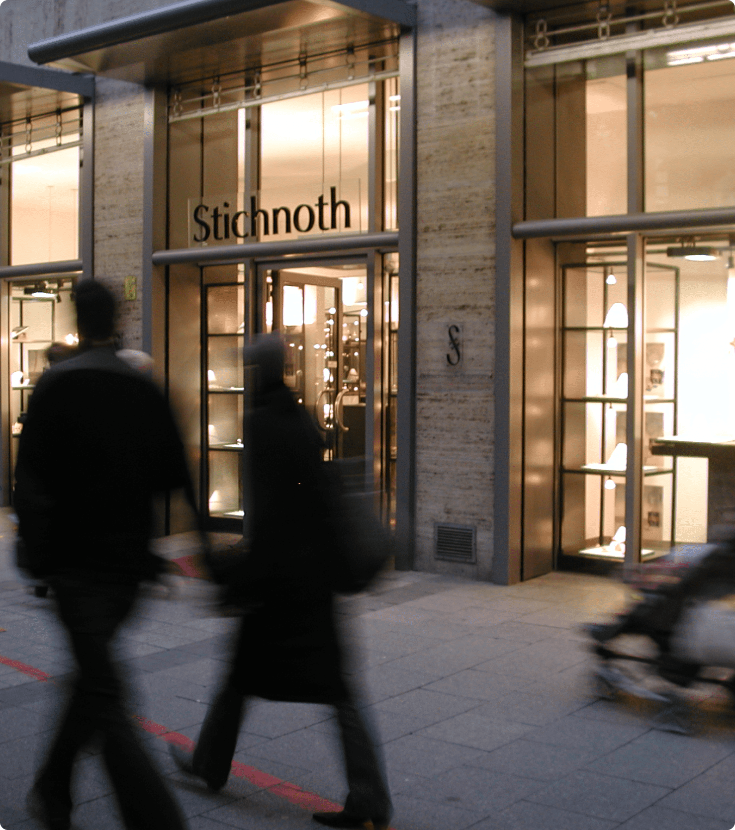 After completing their apprenticeship and their studies at the Zeichenakademie Hanau, Dirk and Jörg entered the family run business 1979 and 1983. The second store of the Goldschmiede Stichnoth was opened at Georgstraße 52 in Hannover.In the following years, additional stores were opened in Berlin, Frankfurt, Bremen, and Hamburg.